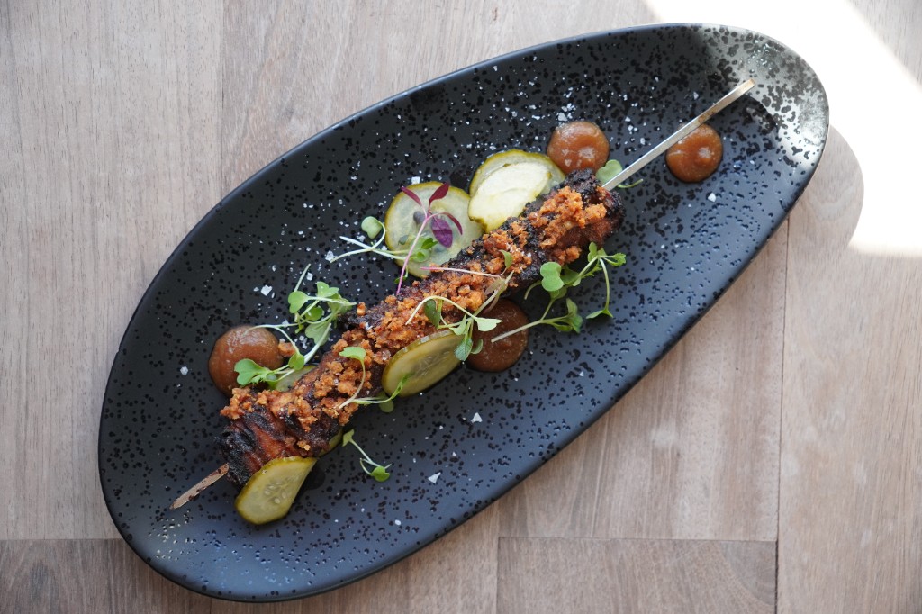 The identity is simple: char, smoke, and open flame, balanced by sweet heat and bright finishes like hot honey, pickles, and citrus.